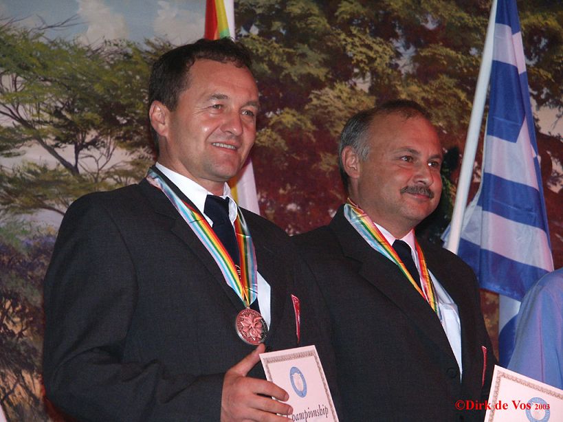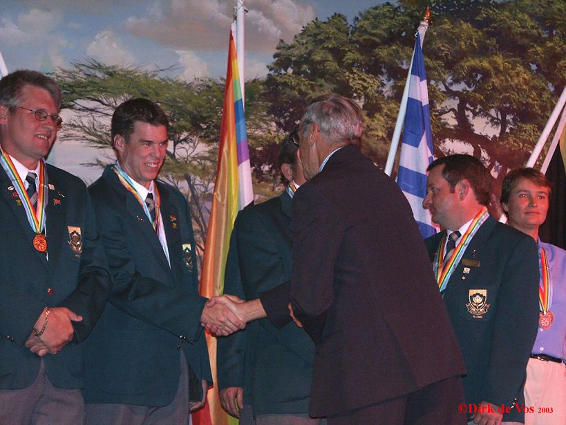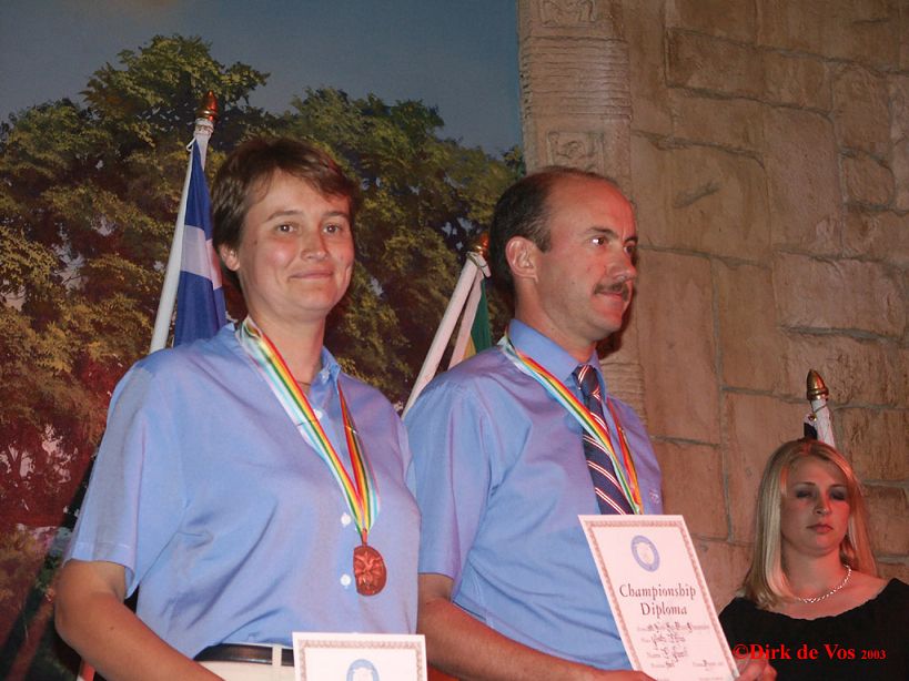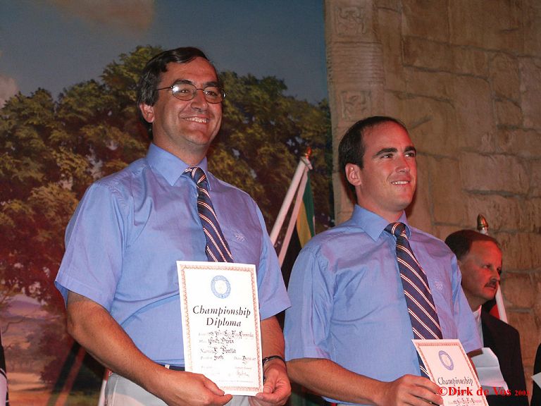 A first place for the individual team of Nigel Hopkins And Dale de Klerk, The New WORLD CHAMPIONS. And a team gold medal for the South African team of Nigel Hopkins, Dale de Klerk, and Adrian Pilling, Renier Moolman