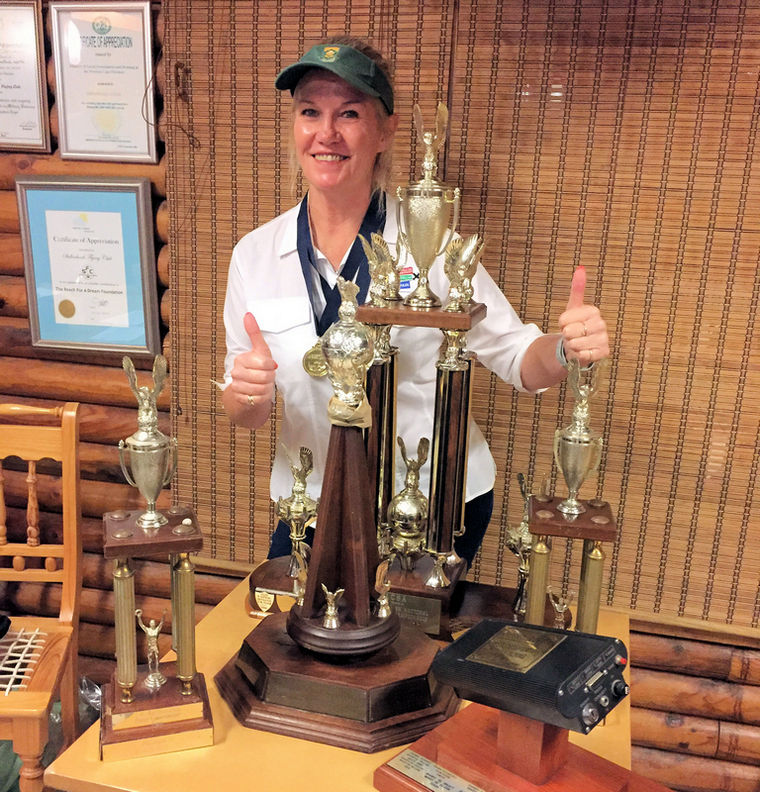 Mary de Klerk and Nigel Hopkins (absent) were proud winners of the 2019 National Rally Flying Championships, beating the competition by an astounding 1410 points