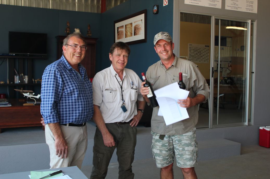 A prize of 100 litres of Avgas was donated by Wynand Uys to the first-placed team, and bottles of wine donated by Sun Catchers Hot Air Ballooning to second and third-placed teams.