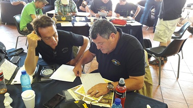 Chris Kyle and Frank Eckard giving safety and route briefings to the competitors.