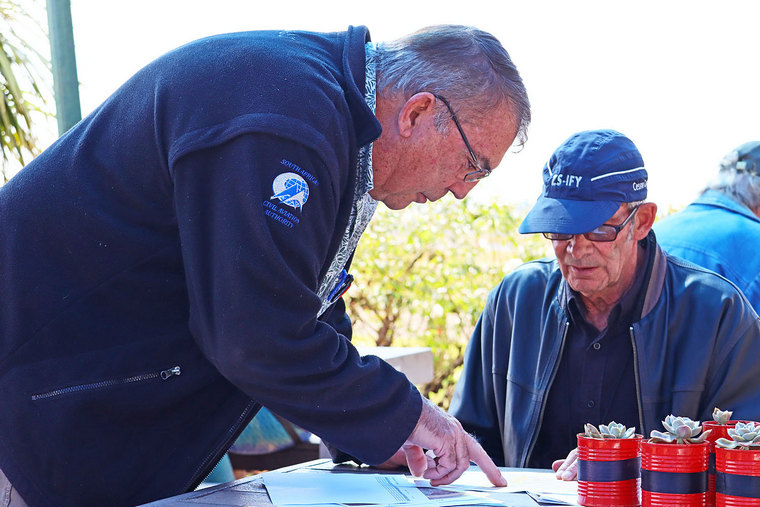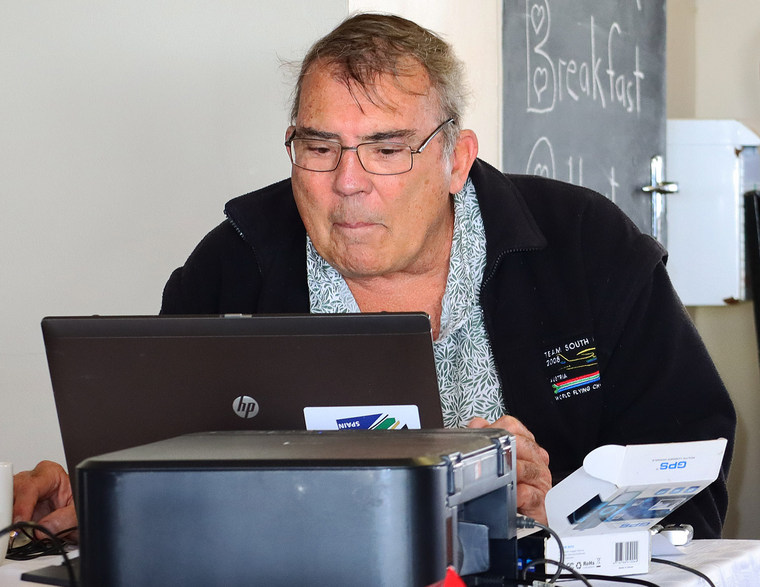 Not to be put off by the typical “HMS Krugersdorp four seasons”, Francois Tolmay welcomed everyone on behalf of Krugersdorp Flying Club and Frank Eckard started the team briefing, outlining the really simple rules and stressing safety and having fun – “aviation with a purpose”. He had not been speaking long, when the weather started to clear, so he gave some “clearing time” by giving a brief background and description of the various SAPFA events and how the Air Navigation Rally format fitted in. The point was made that provincial and national colours could be earned by achievements in the ANR discipline.