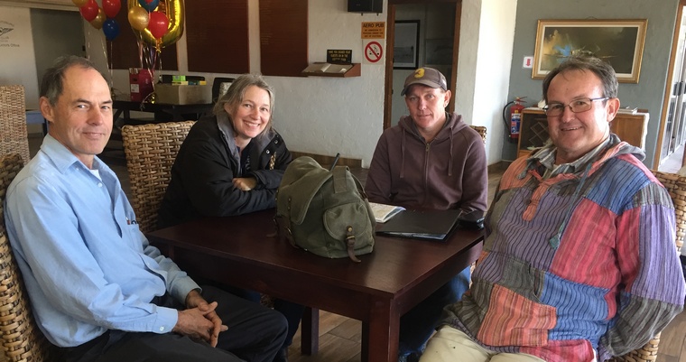 Waiting patiently for their results, whilst recalling their experiences during the rally, Chris Nicholson and Dave Taylor (front) with Telani Lithgow and Johan Rikert (back).
