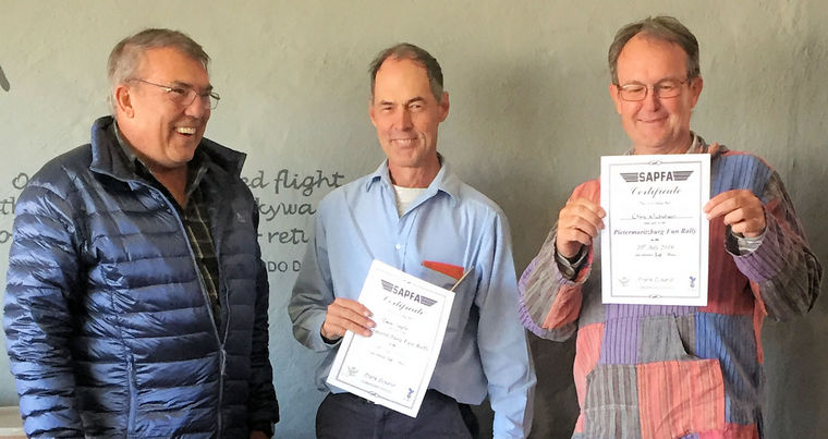 For the first time in 24 years, Pietermaritzburg Aeroclub held a Fun Rally. Frank Eckard, who got his PPL at the club 32 years ago and was on the committee for seven years, has lots of very fond memories of his years spent there and was thrilled to set up a rally on his old stamping ground.Martin Hellberg, who was Frank’s first navigator and who competed with him in Denmark in 1995, was one of the competitors. Unfortunately, the turn-out was low, despite valiant efforts by club Chief Flying Instructor Telani Lithgow while the predicted weather put some crews off.Five brave teams eventually took off after a delayed start due to low cloud and all received excellent scores, missing only one turnpoint each – a fabulous feat for first-timers. The route started at a turnpoint near Thornville, crossing the ridge at Richmond, then turned South before joining the Umkomaas and following the valley, then back to Pietermaritzburg via Eston.