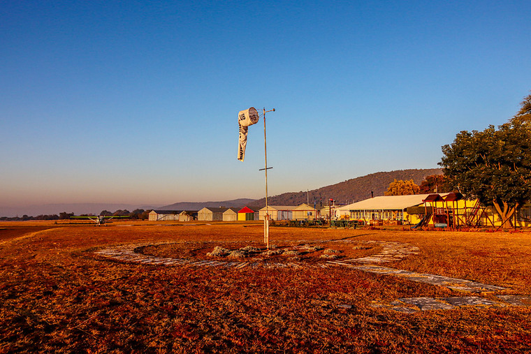 Brits Flying Clubhouse with Jonty Esser’s C150, still in pajamas, and some of the hangars as the sun started to warm things up.