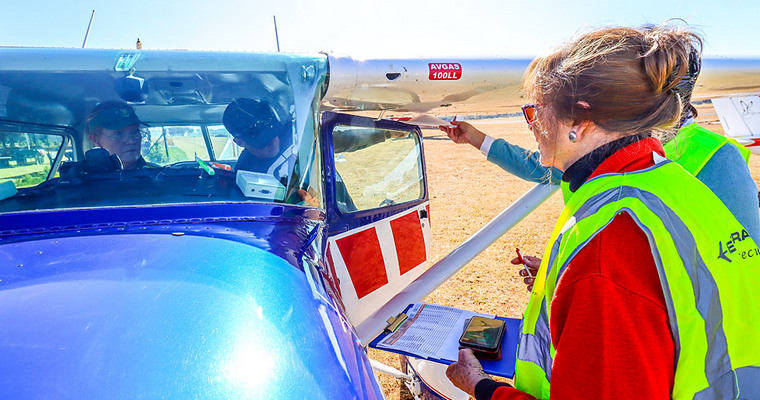 Tarryn and Iaan Myburg preparing after receiving their instruction envelope, taking off and landing in ZU-BSA.