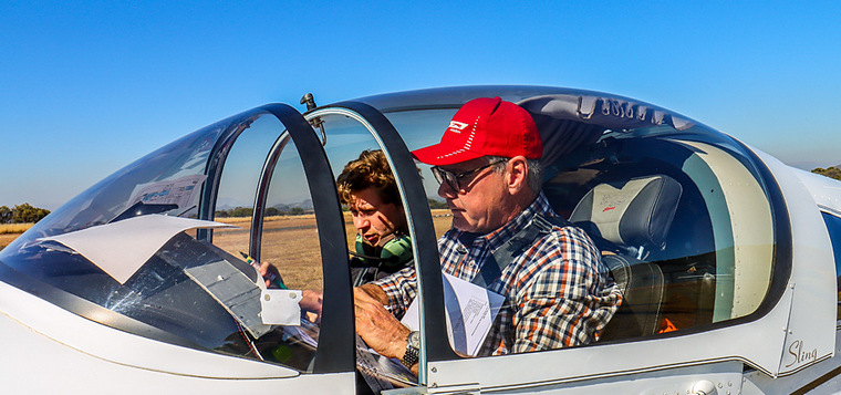 Hendrik and Jandre Loots getting to grips with the contents of their instructions, taking off and landing in ZU-IHK.