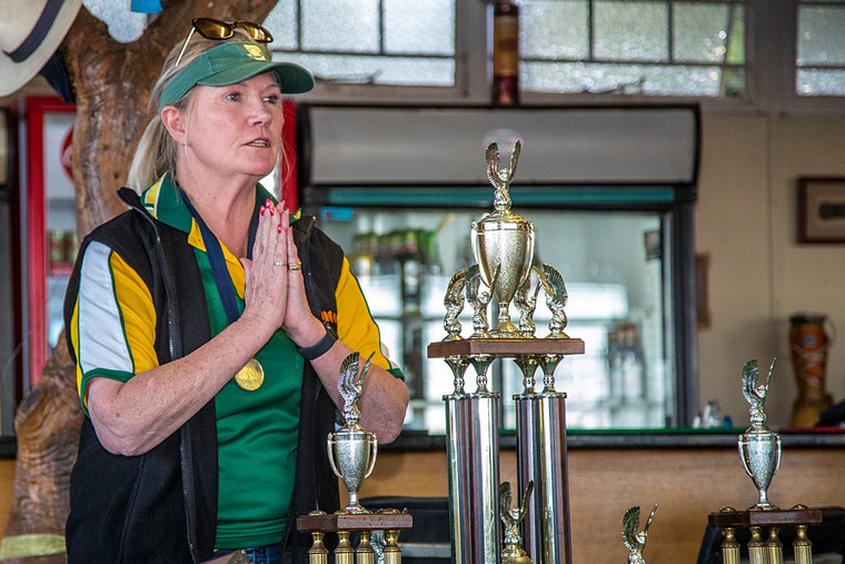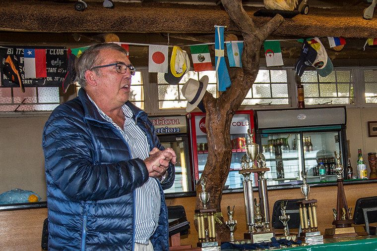 Frank opening the prize-giving with thanks to all participants and officials, the various officials and contemplating who was the worthy recipient of the “propeller helmet” for interesting interpretation of arcs . Jonty and Sandi took this award, with the most “interesting” arc, but had already left.