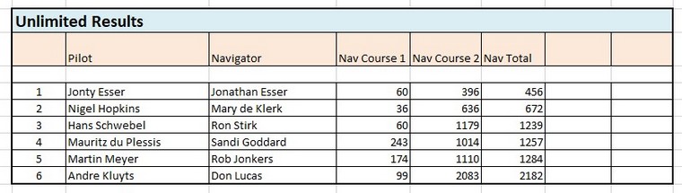 The results were separated into two classes, Sportsman class and Unlimited, the Unlimited teams being Proteas.