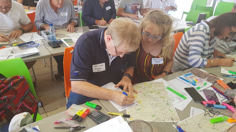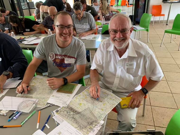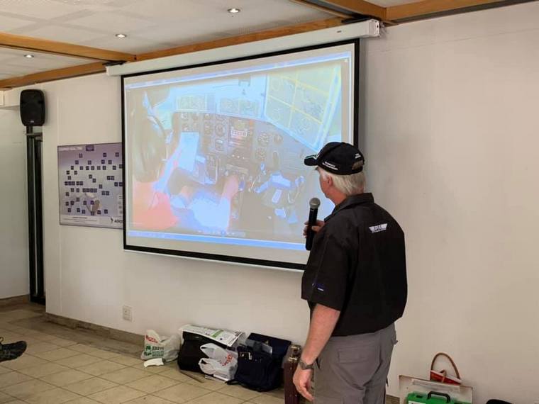 The morning’s training ended off at around 11 am, and after a short break, everybody got their first route in an envelope, got the laminated transparent tool, which they had to cut out, and proceeded to plot each of the turn points making up the route. It was decided to proceed right through lunch, and most had finished their plot by after 2pm. The course was ended off with an in cockpit video of one of Rob & Martin’s 2012 rally flights to show how the leg photo features match up with the real world outside to give the perspective of what one sees outside the cockpit from the flying height and distance.