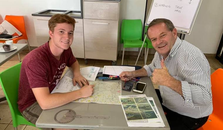 Protea pilot Adrian Pilling and newly minted ppl pilot son Adam learning from the expert
