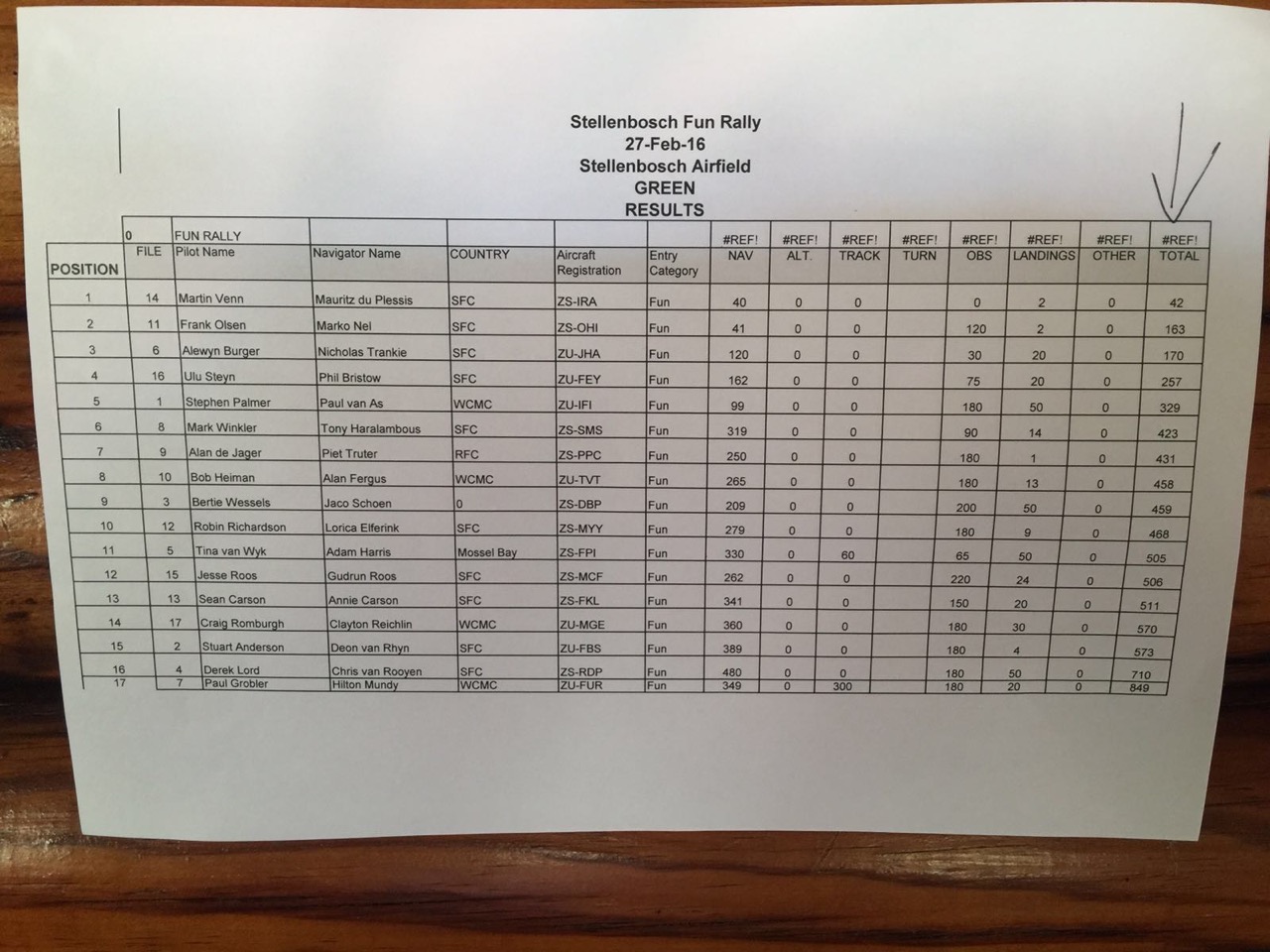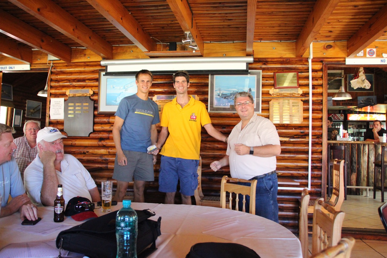 And in 1st place, Martin Venn and Springbok Rally Pilot Mauritz du Plessis in a Cessna 172. Well done gentleman! They walk away with some Flying Club Golf shirts, rulers and other aviation goodies.
