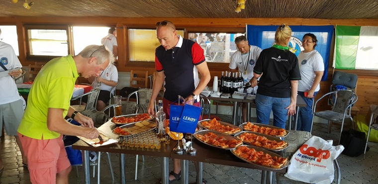 The Norwegians preparing their salmon snacks