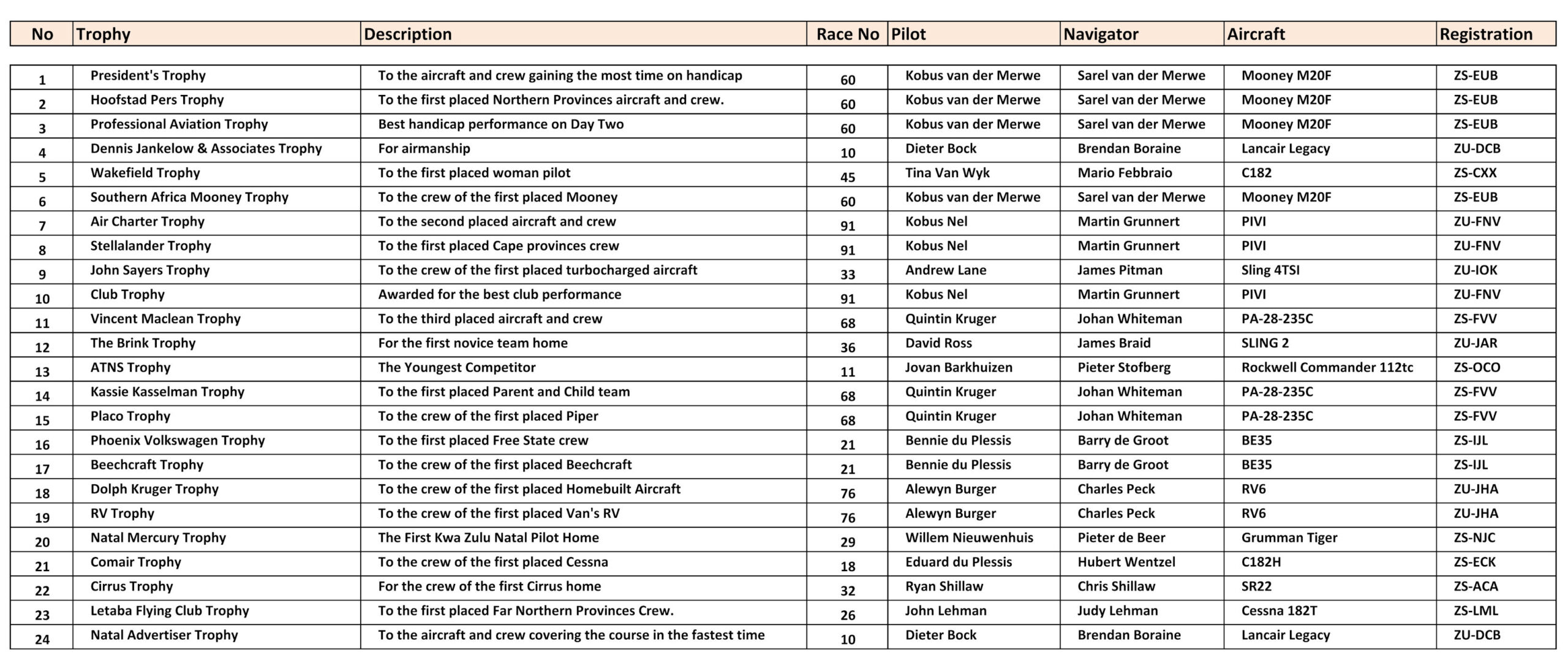 • South African Precision Flying Trophies