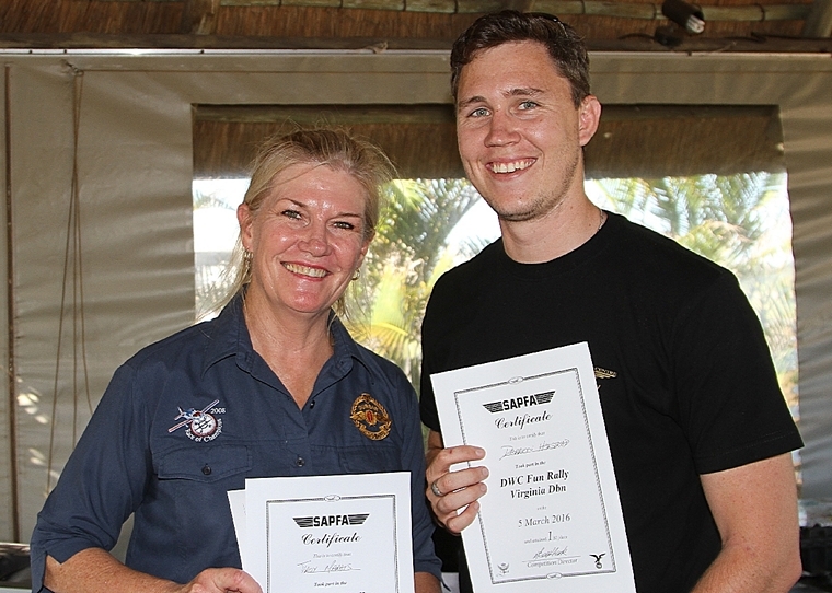 Thanks extended to the Durban Wings Club, especially Cate Juselius for hosting the event and run by the enthusiastic Mary de Klerk, the two flying schools Durban Aviation centre and Virginia Flight School for supporting the event with entrants, and Tyrone from Comav Insurance all the way from Gauteng supporting the event with wonderful prizes of an enraved leatherman for each of the winning team,  as well as photographer Mike Wright who donated aviation magazines as prizes.