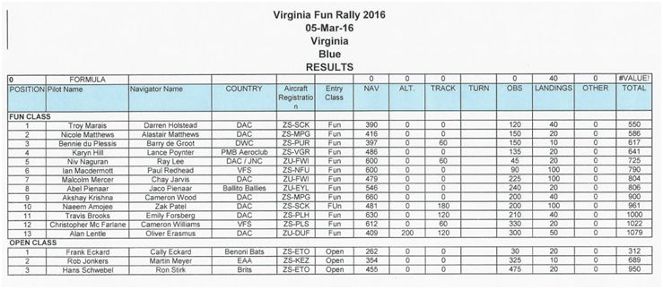 And in the open class 1st place went to Frank & Cally Eckard in a C172. In the landing competition 1st place went to Bennie du Plessis and 2nd place to Rob Jonkers in a C152 & C172 respectively.