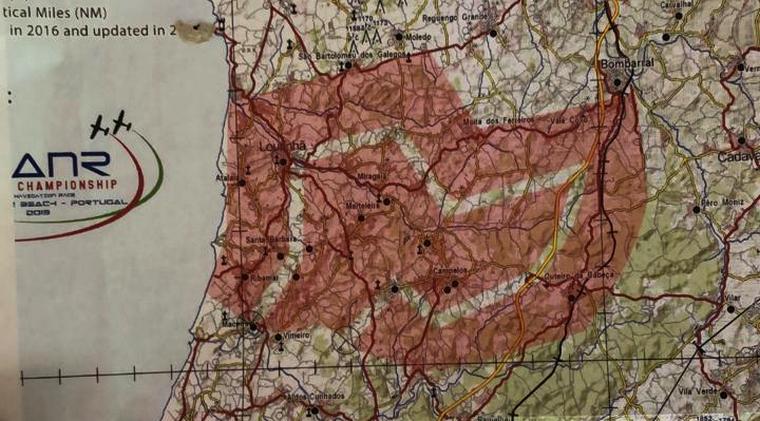 The final day’s map showing the corridors in the shape of an aircraft that competitors had to fly in.