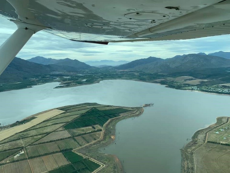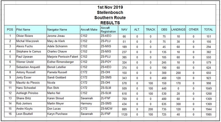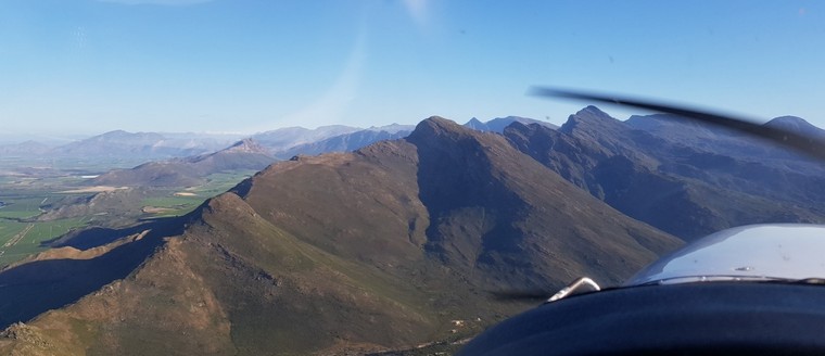 The competition route on Friday was a route to the south east of Stellenbosch, with high overcast weather predicted with strong upper winds of up to 20 kts. The route took the teams just south of Sir Lowry’s Pass, remaining in the high ground and mountain areas until a steep descent to the coast to Voelklip, then along the coast all the way past Hermanus, with whales visible just off the river mouth in Walkerbay. From there the surprise steep climb up Maanskynkop, everybody having to snake their way over the top, and then into the Caledon valley up to the Theewaterskloof dam, and then back over the ridge of the Hotentots-Holland mountains to find the sharp bend in the railway line that goes up Sir Lowry’s pass, then to the finish point through Kleinnek which is just abeam the Helderberg. This was a very scenic route, as the whole Cape is, with many of the competitors being distracted from flying the route rather enjoying the scenery….